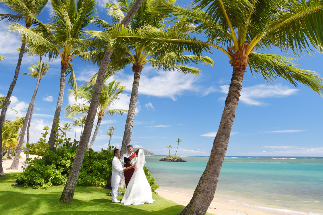 Simply fantastic scene at Kahala Beach in South Oahu. This is our most recommended wedding venue in Honolulu. Call Bridal Dream Hawaii at 808-924-3600 for a wedding package at this gorgeous venue!