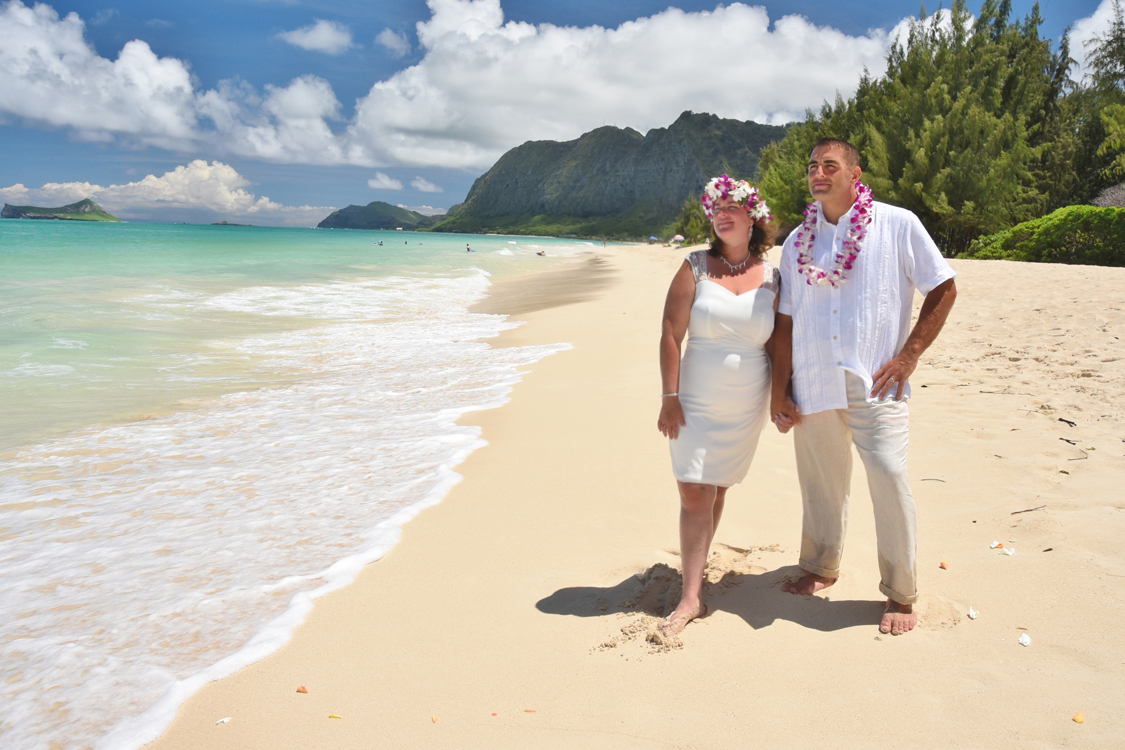 Waimanalo Beach is the most spacious beach on Oahu, and not as crowded as most other beaches on the island. This is a great wedding location with the beautiful turquoise ocean color of a sandy bottom ocean floor.